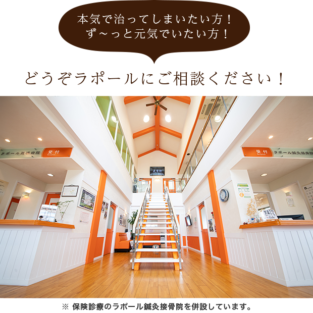 保険診療のラポール鍼灸接骨院を併設しています