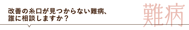 ガンや心臓病など命に関わる病気、そして原因が解明されない数々の難病。手に負えないケースもあります。残念ながらまだ解決策の見つからない症状もたくさんあります。