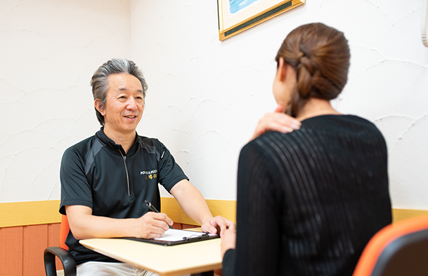 ラポールには、お決まりの手順は一切ありません。すべての施術がオーダーメイド。お一人お一人の症状や身体バランスや使い方を見極め、つねに「あなたにとってベスト」な施術を行います。