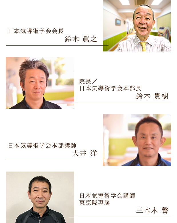 全国から毎年延3000名もの人たちが学びにくる日本気導術学会。施術を担当するのは、その会長、本部長、講師たち。プロたちに教えるプロたちが、あなたの担当スタッフとなります。