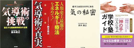 「気導術の挑戦」「気導術の真実」「気の秘密」そしてゴッドハンドとして鈴木貴樹院長が紹介されている「『神の手』11人に学ぶ学校・塾ガイド」。4冊の本が出版され、全国的な話題となっています。