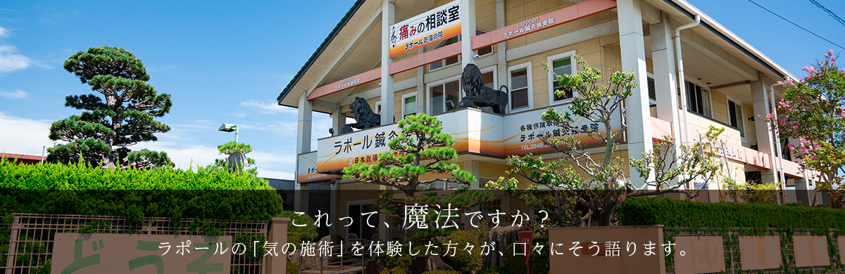 同時に「気」に神秘性はあります。それは、無限の可能性を秘めているという神秘性です。私たちがもしその可能性を最大限に活用できたら、治せないものはないのではないかと私たち自身、期待を膨らませています。まだたしかな解決策のみつからない病気も数多くあります。しかし、病名を怖れない!どんな難病にも必ず答えがある!というポリシーのもとに、日々解決策を探し続けています。ですから、常識的には回復が望めない原因不明の難病であっても、あるいは年齢が年齢だから仕方がないといわれる症状であっても、どうぞ諦めないでください。私たちは常識をはずして、常識以上の答えを追求します。ラポールが諦めることは決してありません。